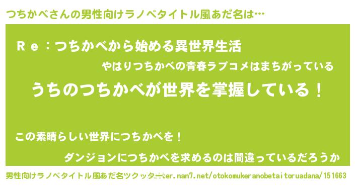| 女子向けラノベタイトル風あだ名 | 『男装つちかべの憂鬱な任務』 |