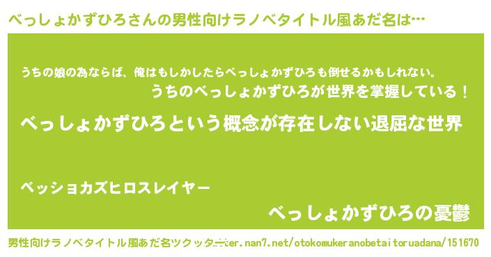 | 女子向けラノベタイトル風あだ名 | 『べっしょかずひろの契約王妃』 |