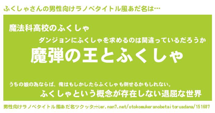 ふくしゃさんの男性向けラノベタイトル風あだ名をツクッター!