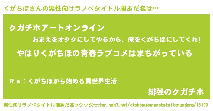 | 女子向けラノベタイトル風あだ名 | 『くがちほの雑貨屋さん』『闇のくがちほ』 |