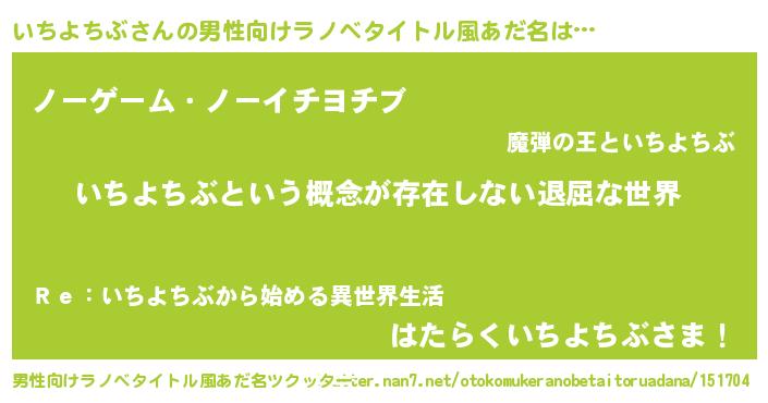 いちよちぶさんの男性向けラノベタイトル風あだ名をツクッター!