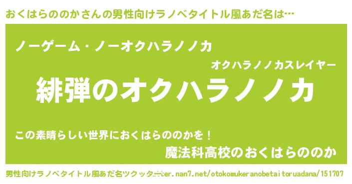 | 女子向けラノベタイトル風あだ名 | 『シンデレラおくはらののか家の靴箱館』 |