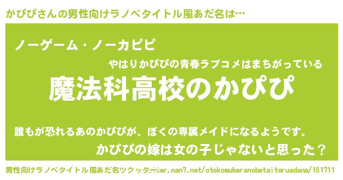 | 女子向けラノベタイトル風あだ名 | 『かぴぴなんてお断りですっ。』 |