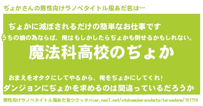 | 女子向けラノベタイトル風あだ名 | 『ぢょかなんてお断りですっ。』 |