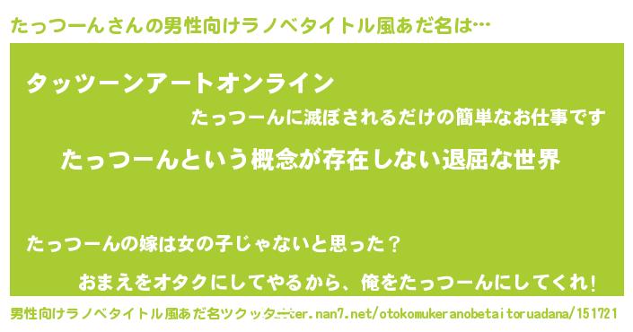 | 意味不明あだ名 | 『永久保存たっつーん』『自称たっつーん』 |