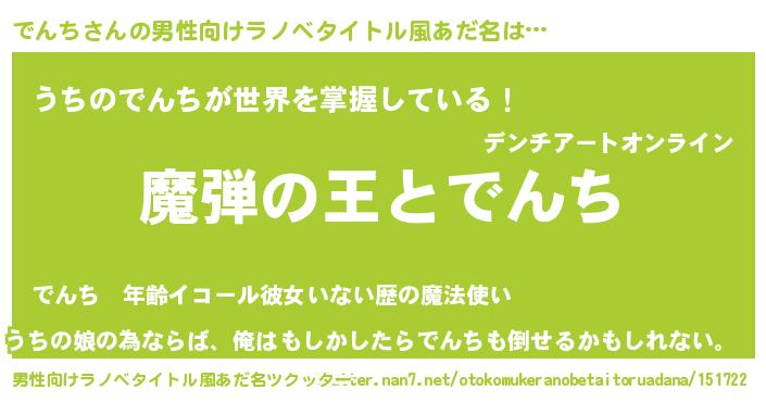 | 意味不明あだ名 | 『住所不定無職でんち(68歳)』 |