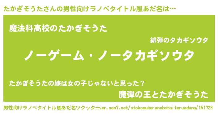 | 女子向けラノベタイトル風あだ名 | 『死神たかぎそうたの再婚』 |