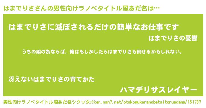 | 女子向けラノベタイトル風あだ名 | 『はまでりさの婚約者』 |