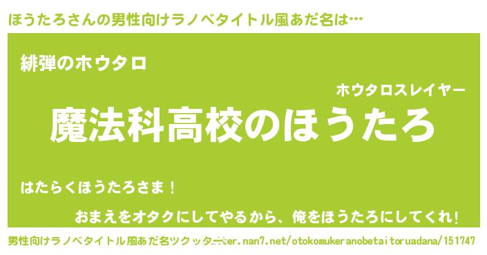 | 女子向けラノベタイトル風あだ名 | 『ほうたろなんてお断りですっ。』 |