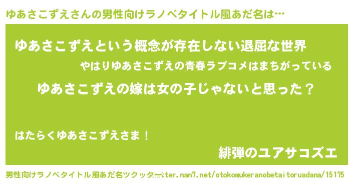 | 女子向けラノベタイトル風あだ名 | 『ゆあさこずえ様がみてる』 |