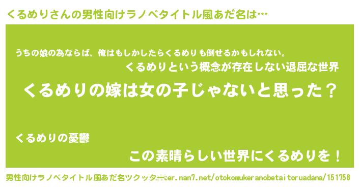 | 女子向けラノベタイトル風あだ名 | 『くるめり様がみてる』 |