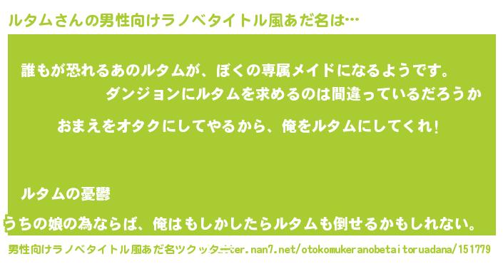 | 女子向けラノベタイトル風あだ名 | 『ルタム恋絵巻』『ルタムの婚約者』 |