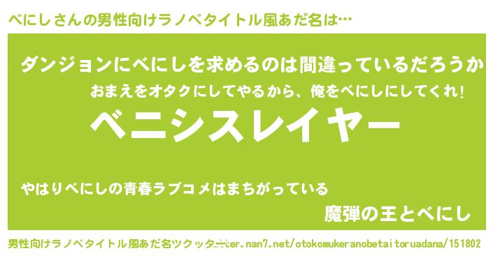 | 胡散臭い通販商品みたいなあだ名 | 『信頼と実績のペンダント…その名も「べにし」』 |