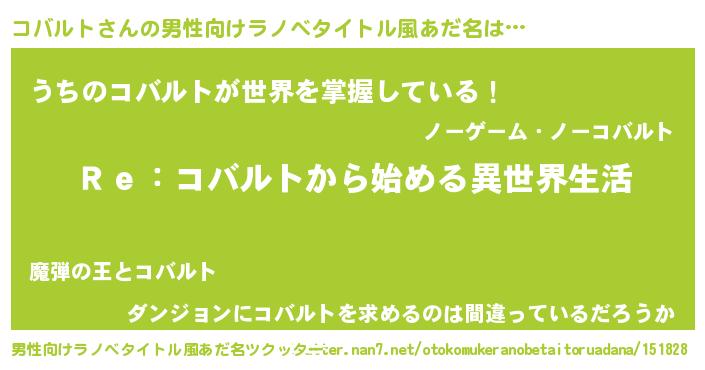 | 女子向けラノベタイトル風あだ名 | 『闇のコバルト』『コバルトは平凡を望む』 |