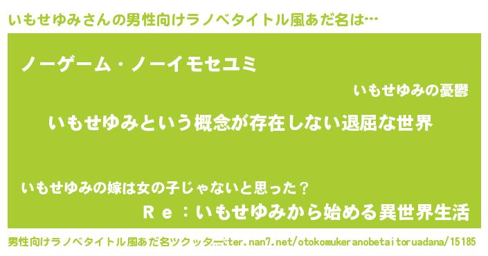 | 胡散臭い通販商品みたいなあだ名 | 『来世でも幸せになれる健康食品…その名も「いもせゆみ」』 |