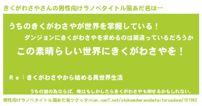 | 胡散臭い通販商品みたいなあだ名 | 『あなたにだけ特別に提供する世界で10本だけ現存している希少なブランデー…その名も「きくがわさや」』 |