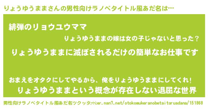 | ヘコむあだ名 | 『りょうゆうまま(笑)』『りょっ子』 |