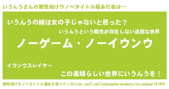 | 伝説のあだ名 | 『救世主となる錬金術士いうんう』 |