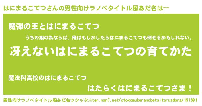| 料理風あだ名 | 『はにまるこてつの炊き込みご飯』 |