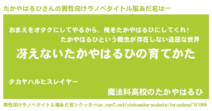| 胡散臭い通販商品みたいなあだ名 | 『お金では代えられないイリジウム磁石…その名も「たかやはるひ」』 |