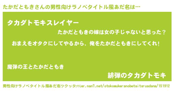 | 女子向けラノベタイトル風あだ名 | 『たかだともき夫妻のなれそめ』 |
