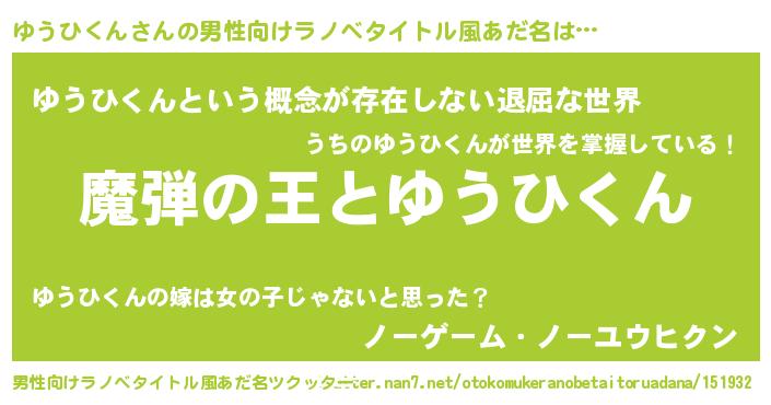 | ヒーロー風カッコイイあだ名 | 『仮面ユウダー』『ネオユウヒクン』 |