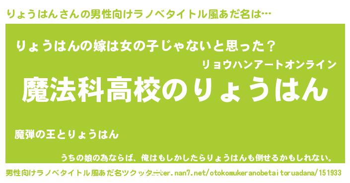 | 女子向けラノベタイトル風あだ名 | 『りょうはんなんてお断りですっ。』 |