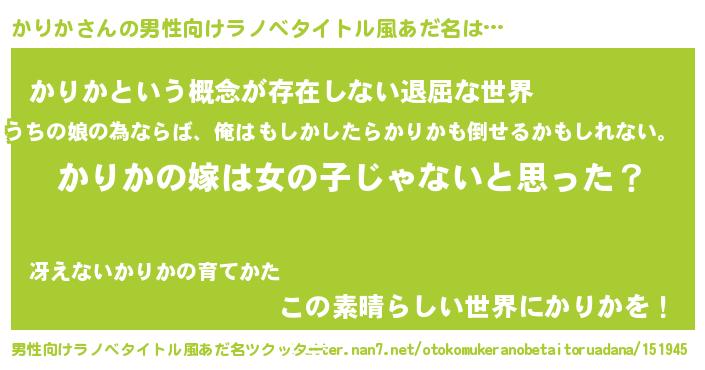 かりかさんの男性向けラノベタイトル風あだ名をツクッター!