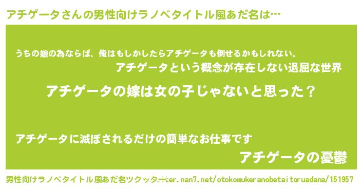 | 女子向けラノベタイトル風あだ名 | 『アチゲータ様がみてる』 |