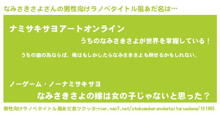 | 女子向けラノベタイトル風あだ名 | 『なみさきさよの婚約者』 |