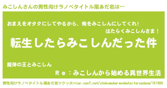 みこしんさんの男性向けラノベタイトル風あだ名をツクッター!