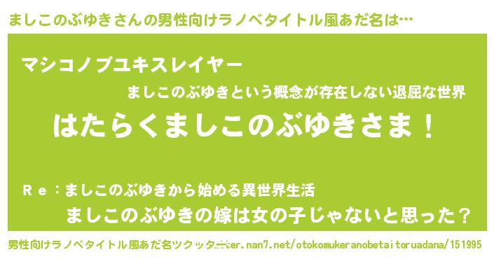 | 女子向けラノベタイトル風あだ名 | 『首の姫と首なしましこのぶゆき』 |