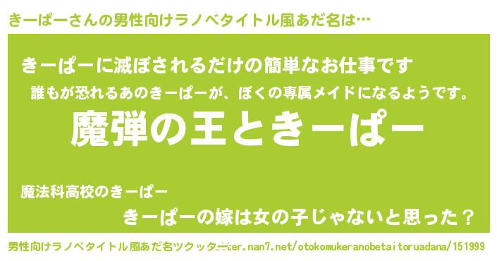 | 意味不明あだ名 | 『住所不定無職きーぱー(59歳)』 |