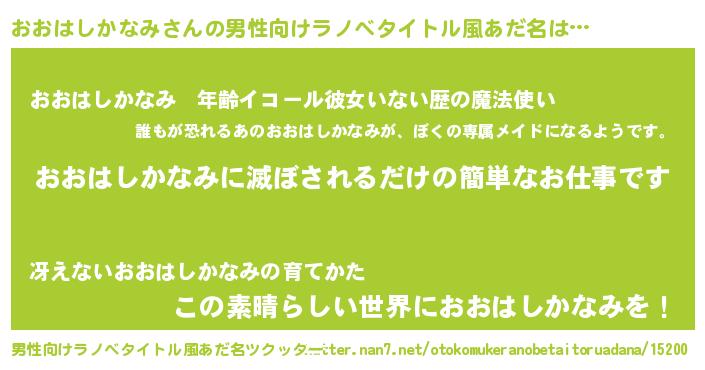 | 胡散臭い通販商品みたいなあだ名 | 『あなたにだけ特別に提供する世界で10本だけ現存している希少なブランデー…その名も「おおはしかなみ」』 |