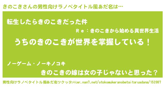 | ヒーロー風カッコイイあだ名 | 『幻影騎士キノ』『最強戦士キノコキ』 |