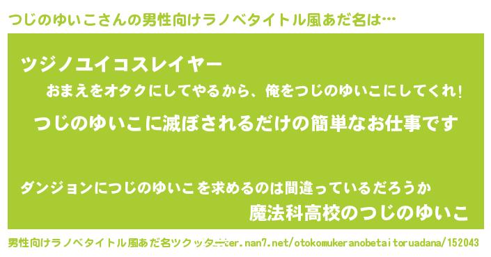 つじのゆいこさんの男性向けラノベタイトル風あだ名をツクッター!