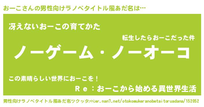 おーこさんの男性向けラノベタイトル風あだ名をツクッター!