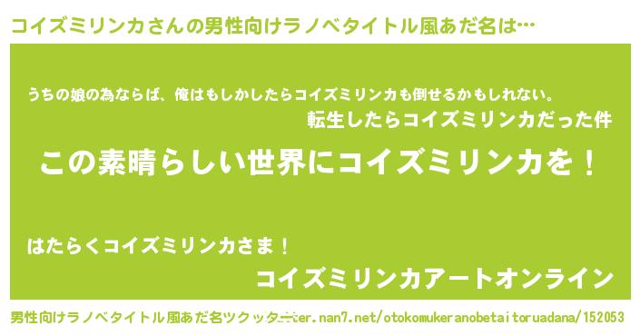 | 女子向けラノベタイトル風あだ名 | 『悪役コイズミリンカに転生したようですが、知った事ではありません』 |