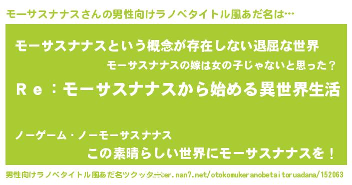 | 意味不明あだ名 | 『自称モーサスナナス』 |