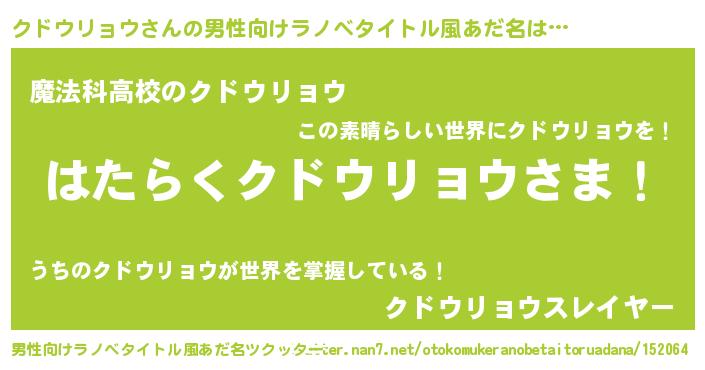 | ヒーロー風カッコイイあだ名 | 『超時空戦士クドウリョウ』 |
