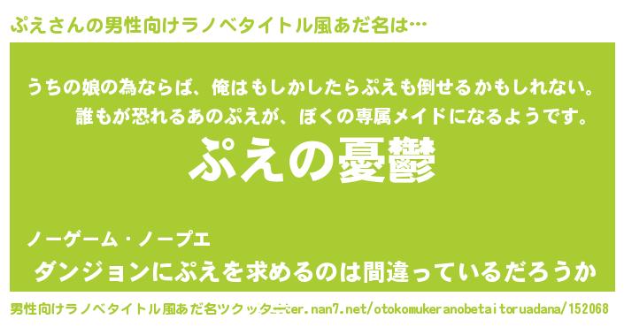 | ヘコむあだ名 | 『ぷえにー』『牛乳』『ぷえを』 |