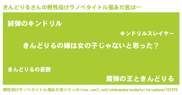 きんどりるさんの男性向けラノベタイトル風あだ名をツクッター!