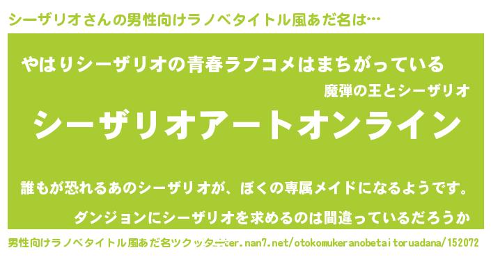 | ファンタジー風あだ名 | 『シーフェル』『エターナルシーザリオー』 |