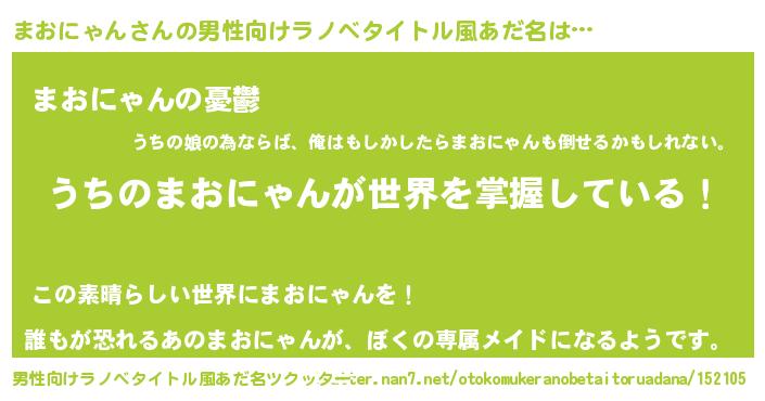 | 胡散臭い通販商品みたいなあだ名 | 『億万長者になれる霊験あらたかなお札…その名も「まおにゃん」』 |