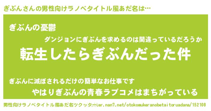 | 胡散臭い通販商品みたいなあだ名 | 『モテモテ間違いなしブレスレット…その名も「ぎぶん」』 |