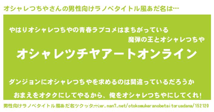 | 胡散臭い通販商品みたいなあだ名 | 『億万長者になれるブレスレット…その名も「オシャレつちや」』 |