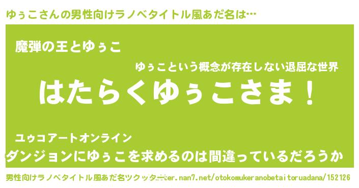 | 意味不明あだ名 | 『住所不定無職ゆぅこ(2歳)』 |