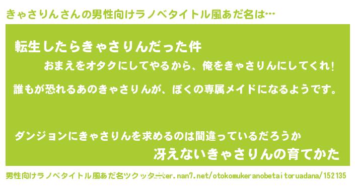 | 意味不明あだ名 | 『永久保存きゃさりん』 |