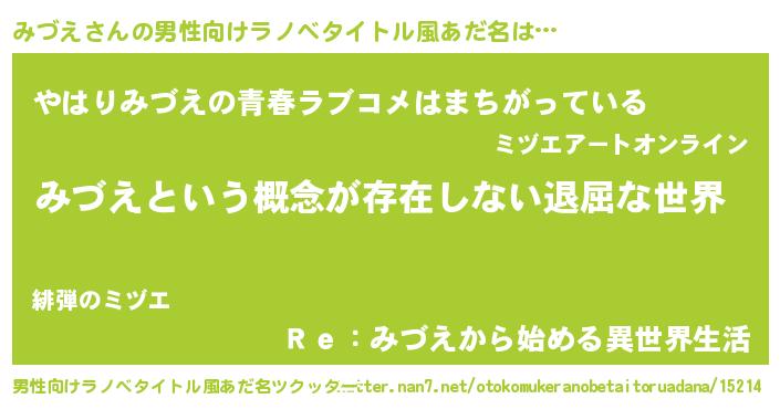 | ファンタジー風あだ名 | 『ミヅディッシュ』『エターナルミヅエー』 |