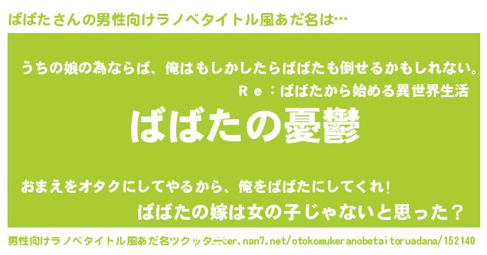 | 胡散臭い通販商品みたいなあだ名 | 『モテモテ間違いなし霊験あらたかなお札…その名も「ばばた」』 |